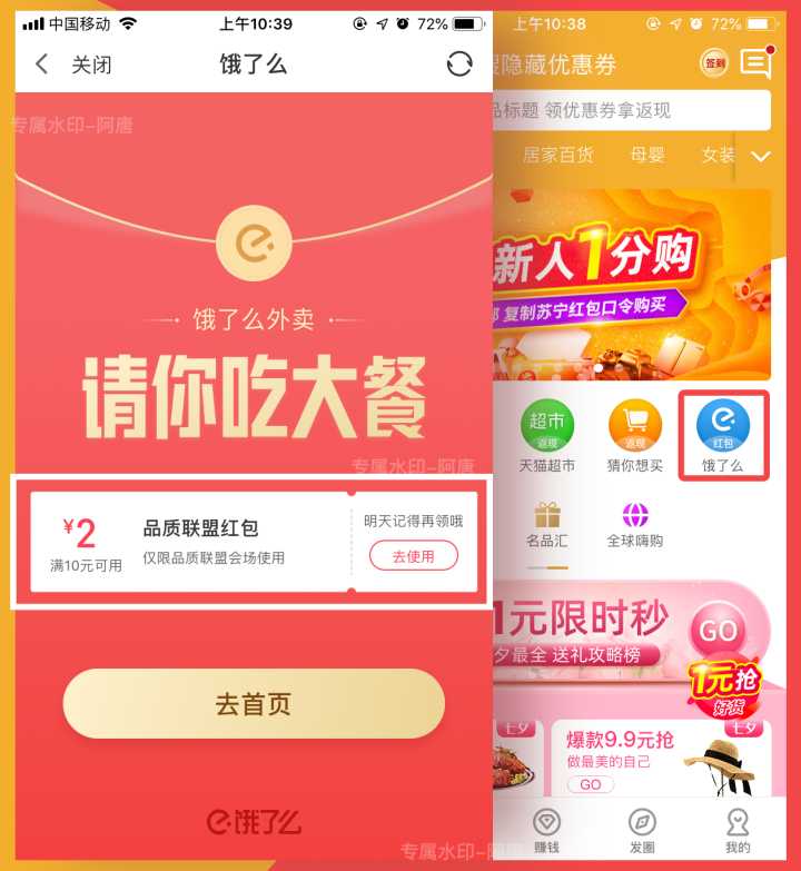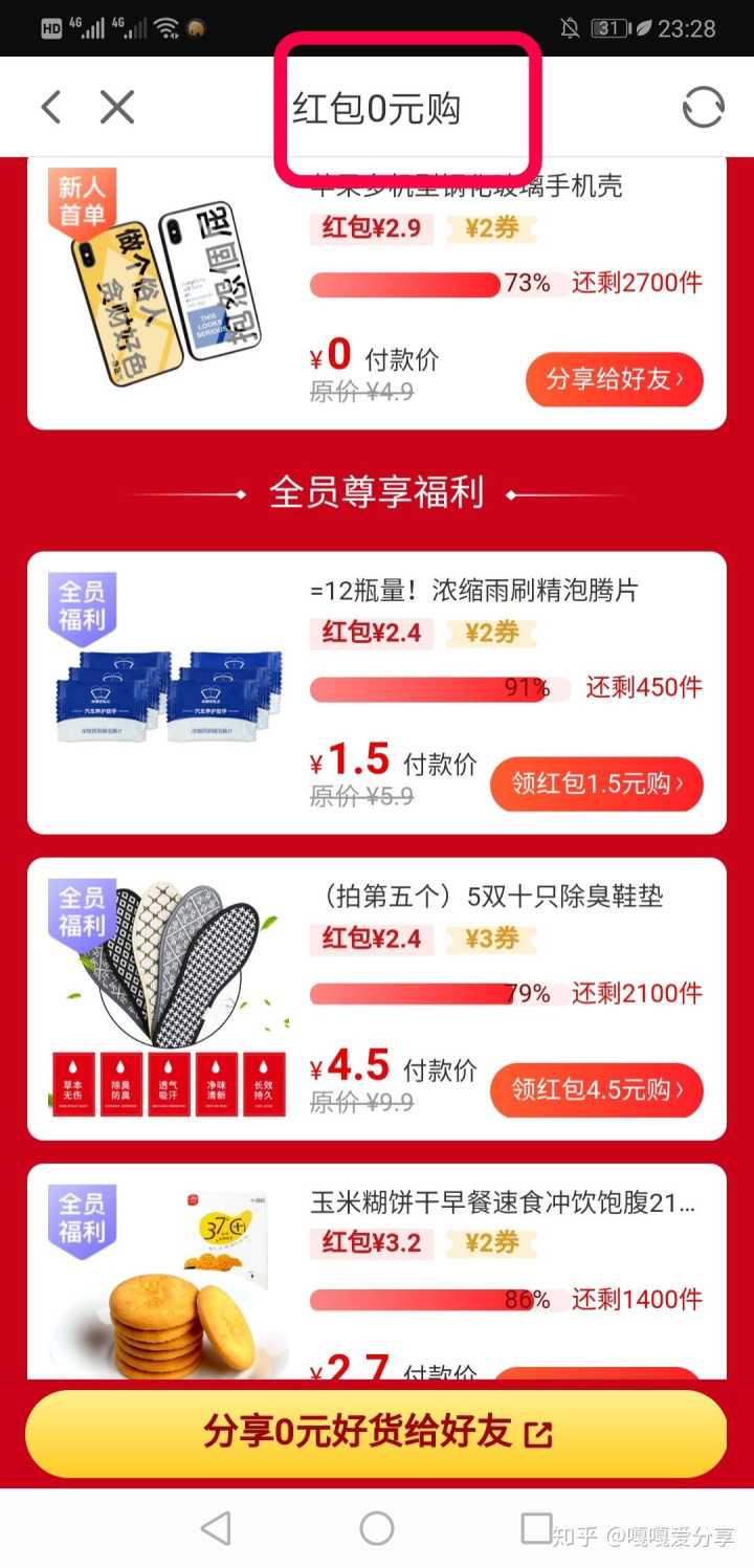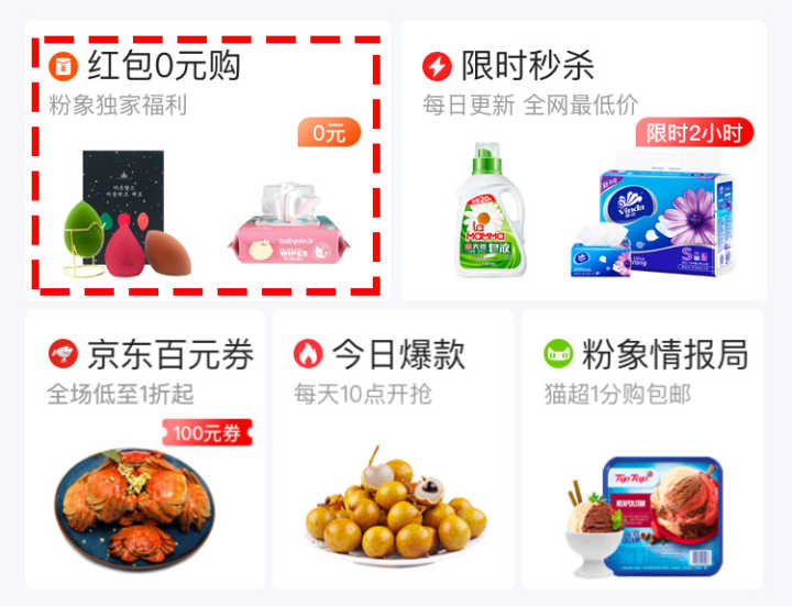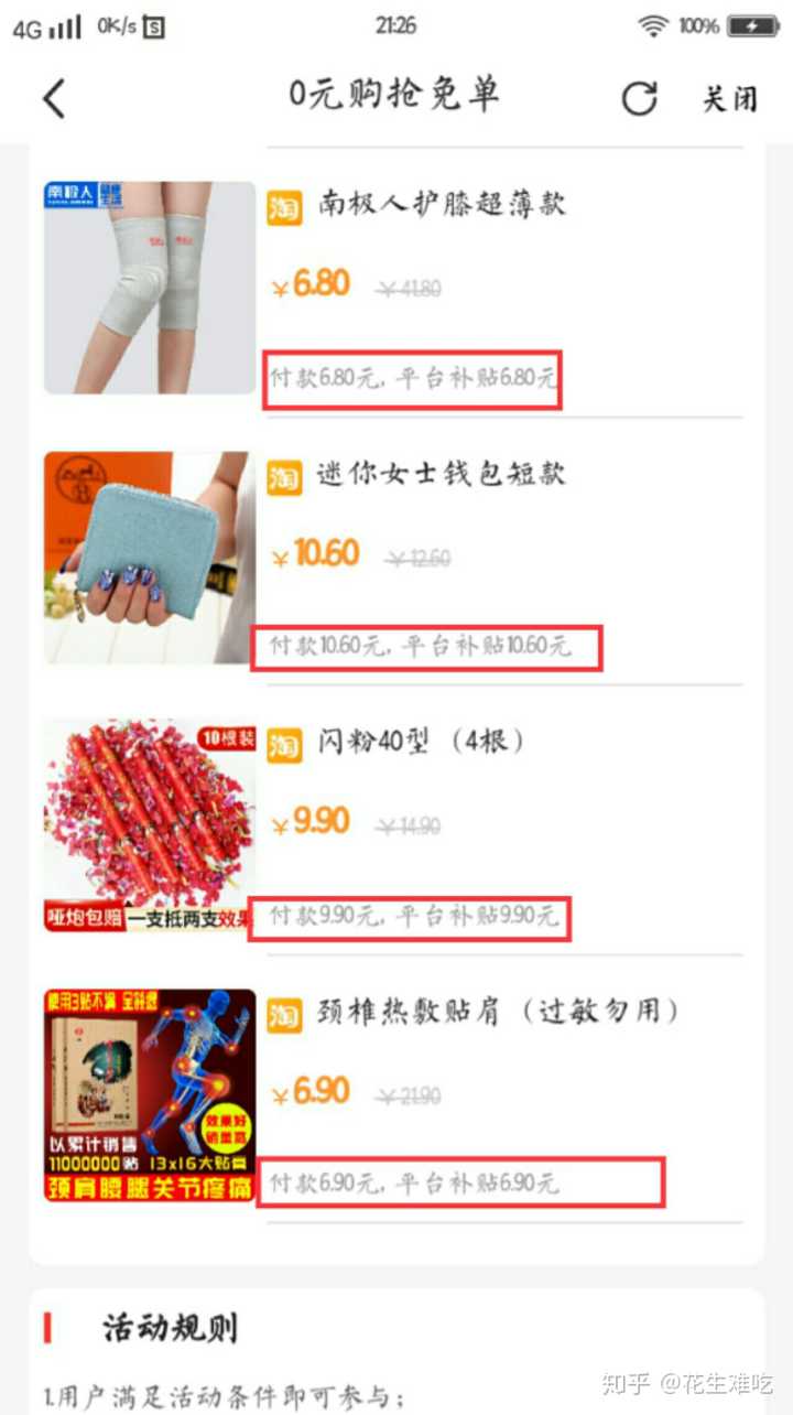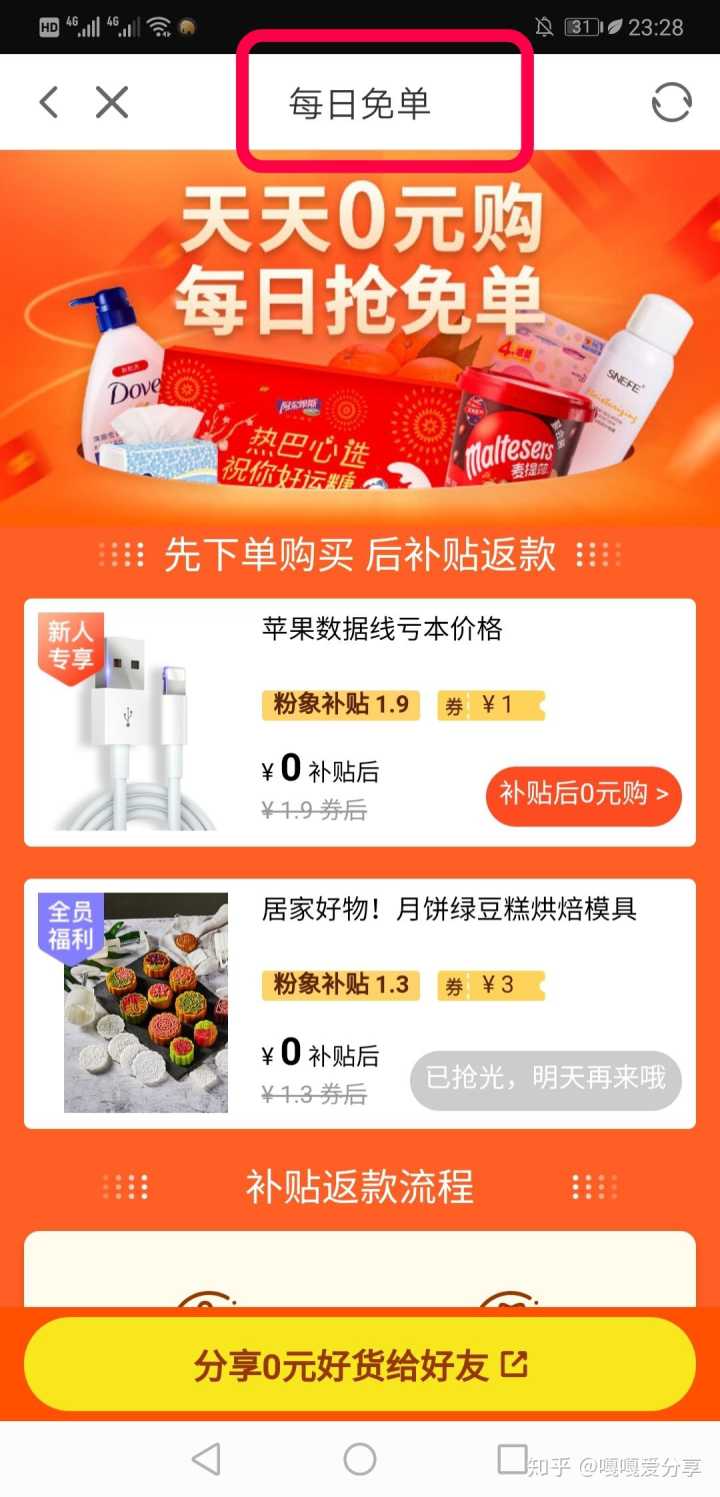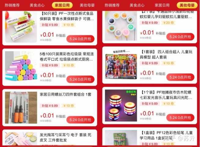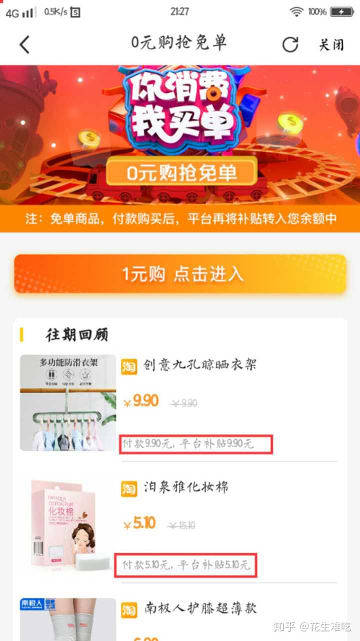 平台与淘宝合作提供的淘宝内部优惠券加平台专属红包补贴,从此开启0元购。