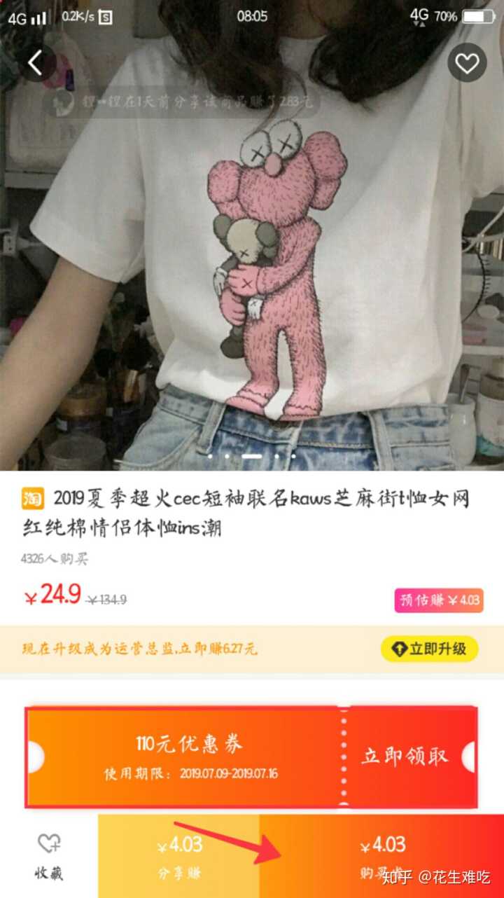 比如这个超级火的优衣库短袖身边如果有朋友想买的话,分享给他领卷购买优惠,还会自己赚佣金,何乐而不为?