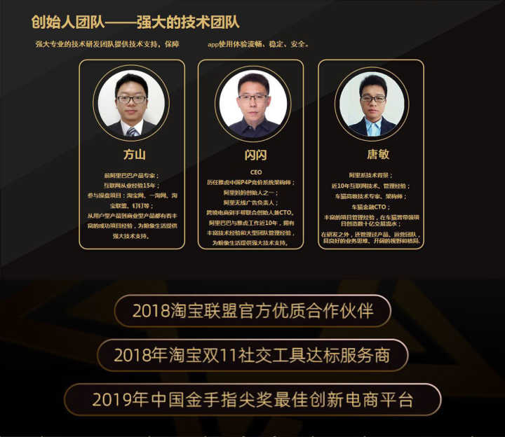 那就是我现在正在用的APP,这个软件是综合性导购返利创业平台,由前阿里巴巴团队亲手打造的,强大的团队研发出来的产品实力可想而知了,专业程度也是非常高的。(ps:下面有惊喜,需要的朋友们可以看一看!)