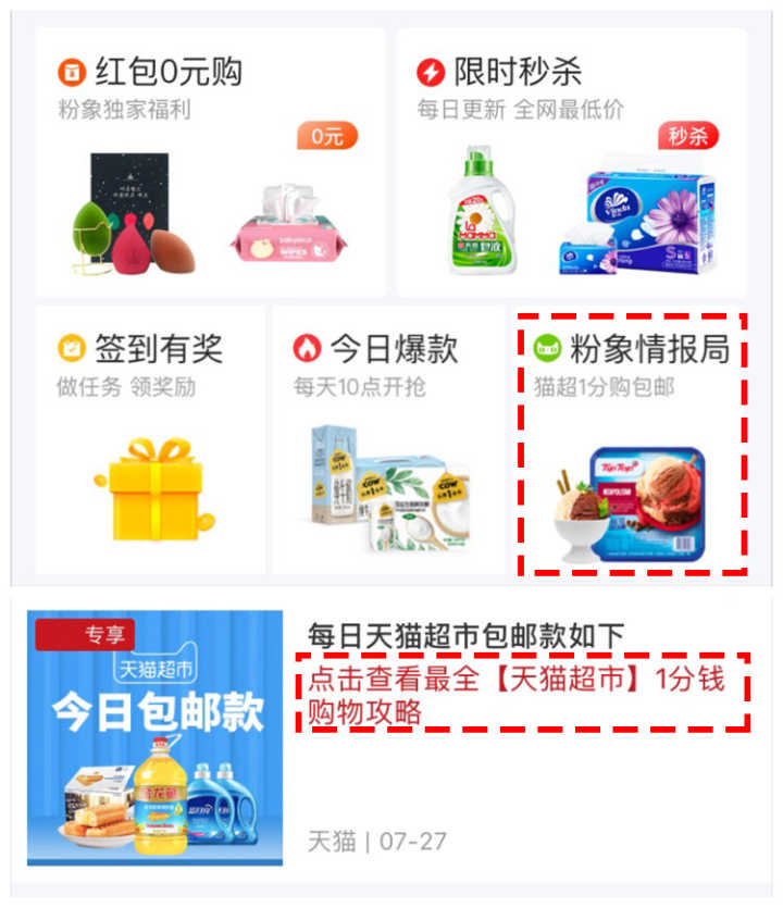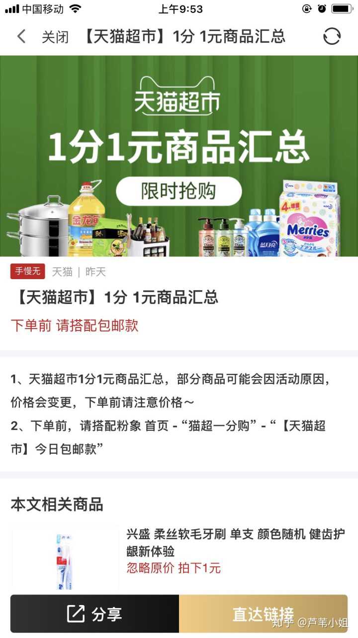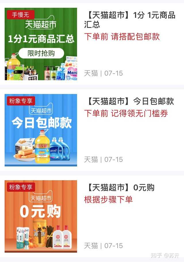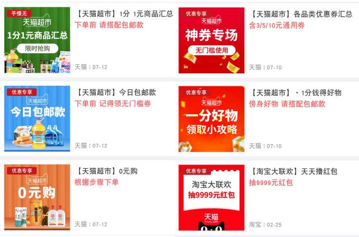 平台自带天猫超市优惠券及天猫超市1分购攻略,从此我学会了神秘的1分购。