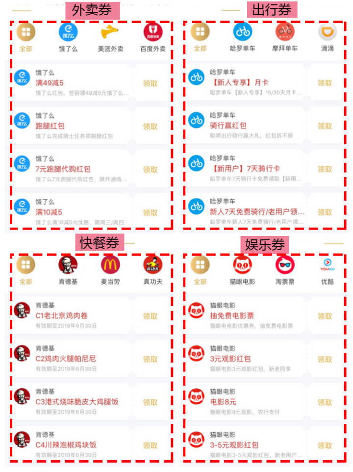除此之外,还有美团、饿了么、滴滴、淘票票等生活类优惠券。吃喝玩乐全覆盖!
