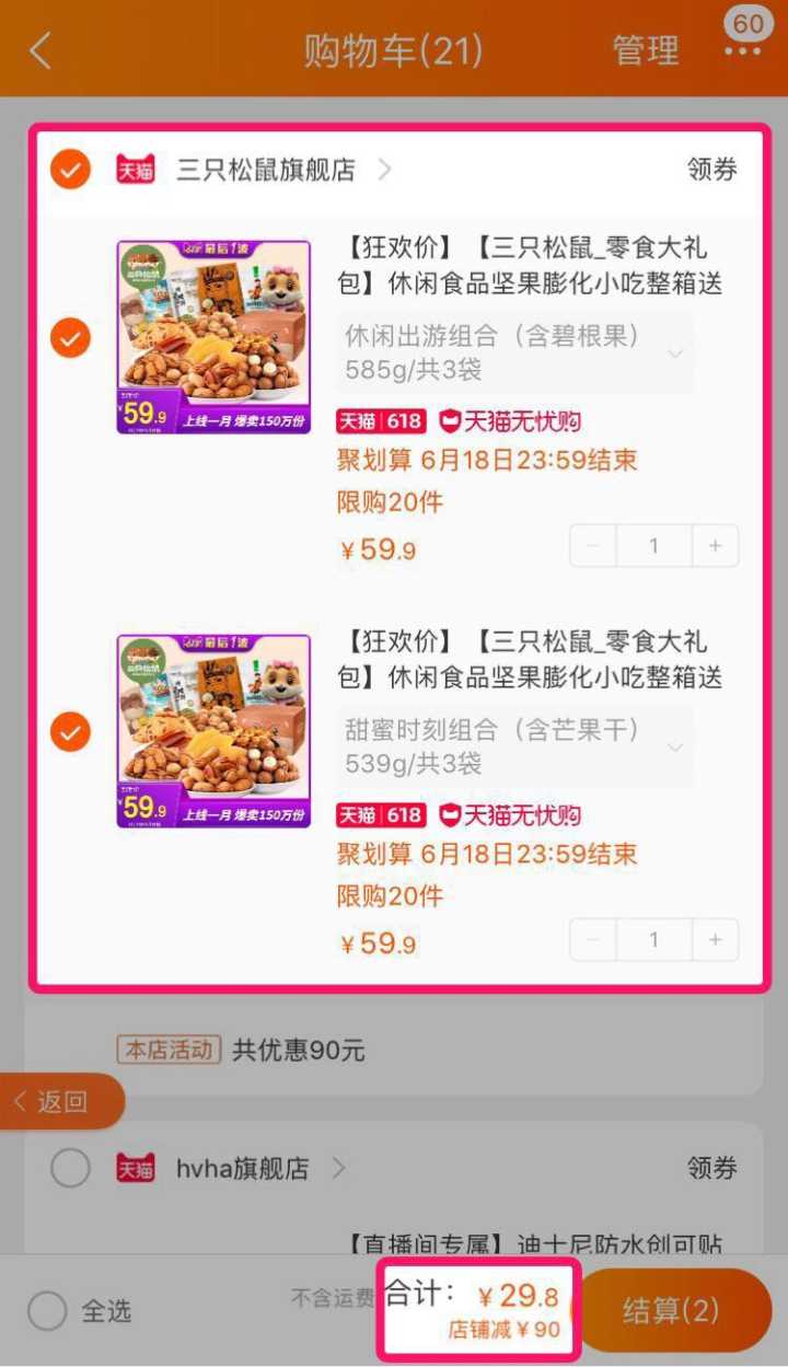 领劵后,3件19.9元,140元大额劵