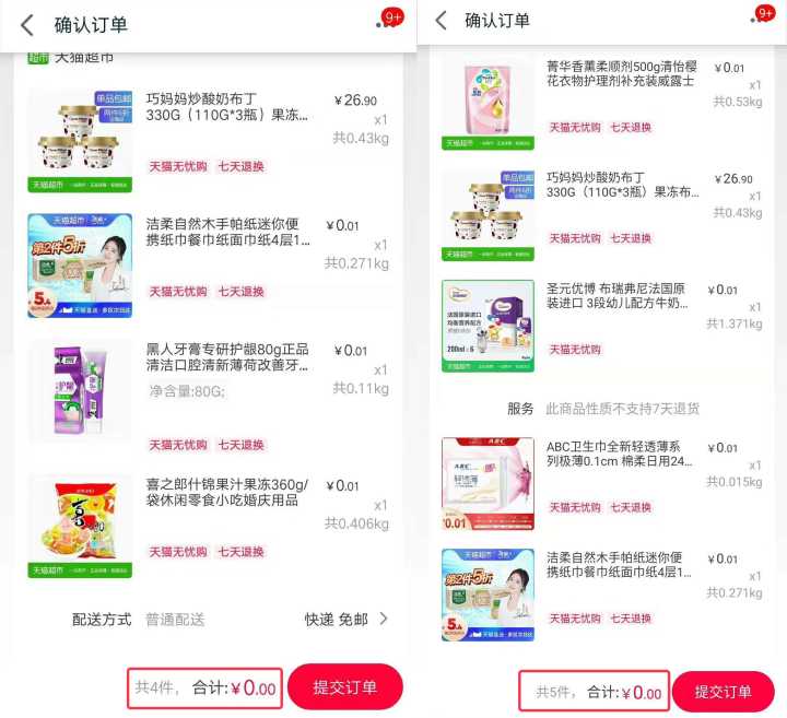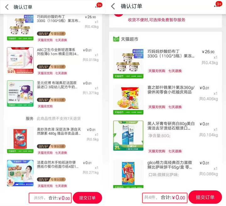 天猫超市0元购、1分购