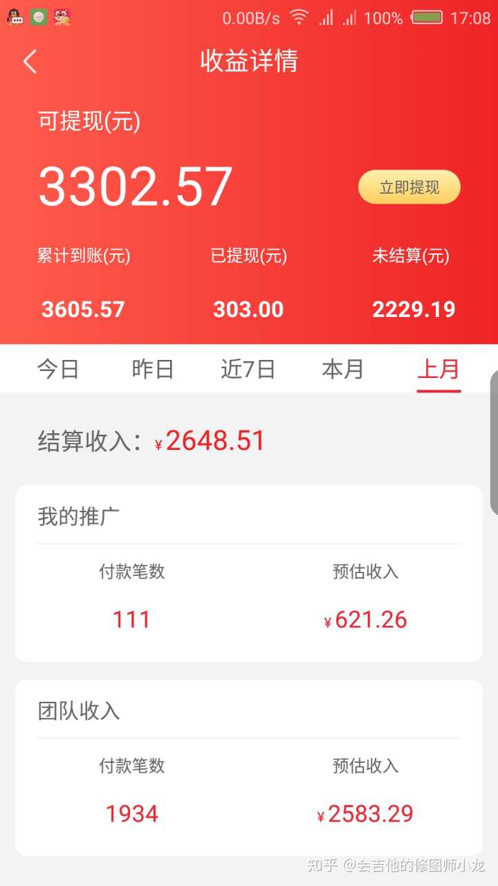 这是我上个月的收入,做了三个月了。一步一个脚印过来的,没有什么引流秘籍,也没有什么爆粉手段