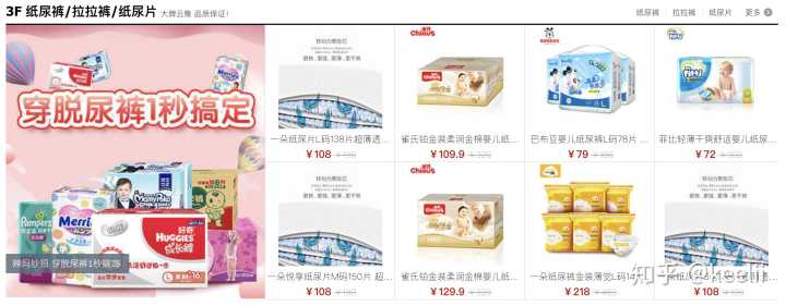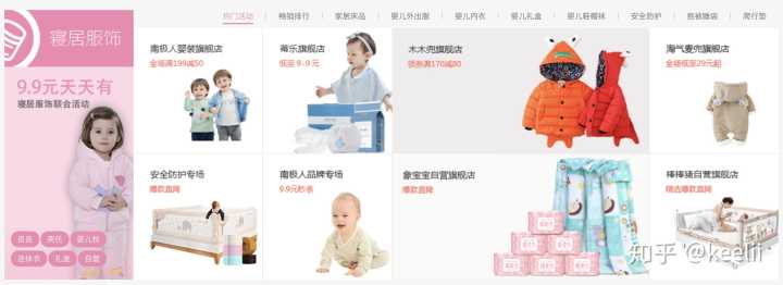 看一眼大概就能知道分别是:贴身寝具/尿不湿、儿童服饰、婴儿用的安全器具。这是一个引导页,图片上不会有具体商品信息
