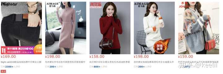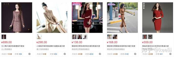 天猫的这个列表就明显过于突出模特的妆容和身材,根本感觉不到这件衣服的材质、面料、风格以及实际穿在身上的效果,而且一张图片里面的元素太多了,品牌 logo、背景、配饰都干扰了用户的视觉