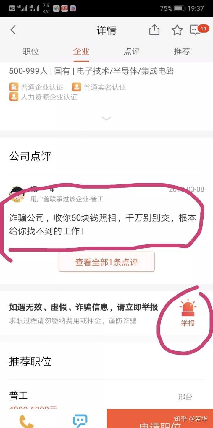 看到有这种负面评论的,就可以下手啦。注意 先点申请职位,然后点举报,至于举报内容,可以根据评论来,比如这个可以点 收费,