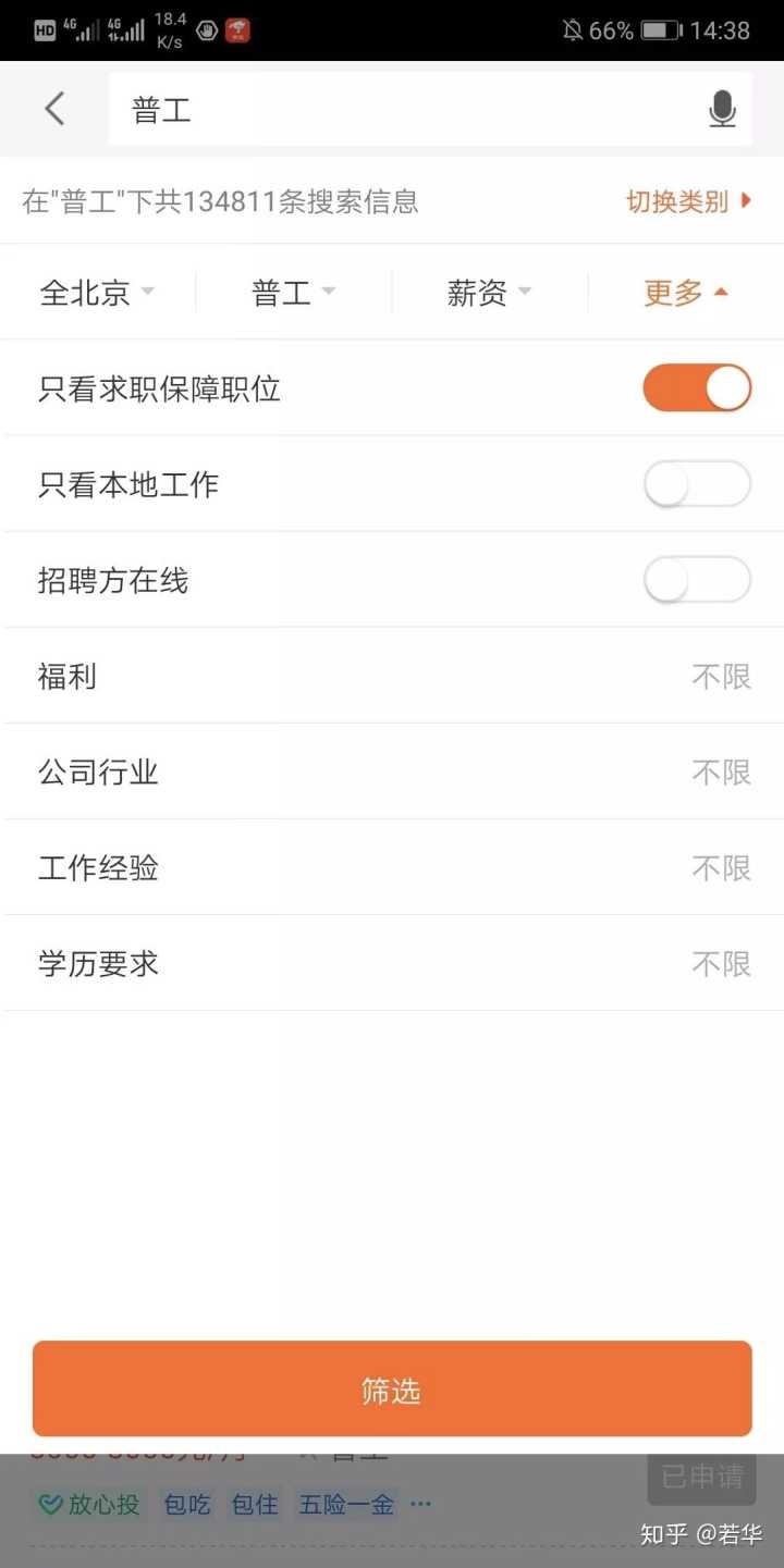 搜索“普工”,进去以后筛选为只看求职保障职位,这一步很重要。这保证了你查看的