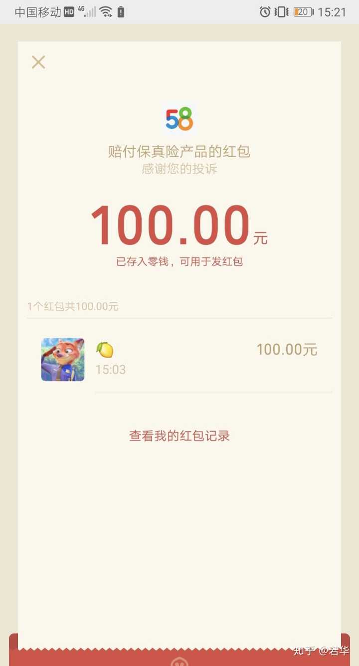 这个大家都看的懂吧,按照他说的,关注58同城公众号,用微信绑定,然后发举报赔付,实名认证一下就可以领取100块了,运气好一下子通过3、4个就可以领3/400了,然后继续套路,差不多撸10次也就是搞到1000块后面举报成功几率就很小了。当然也不是不可能,最好不要太贪心。