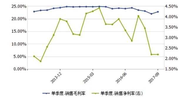 物流方面,成本占比提升。三季度唯品会履约费用16.7亿元,同比增长63%。履约费用占销售额的比例从去年同期8.5%上升到10.9%,因此对盈利能力压力较大。并且管理层继续加大对物流投入,目前总仓储面积240万平米。