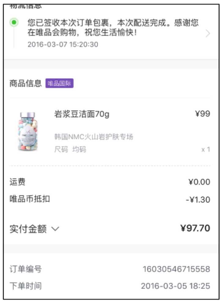 14. 其他品类还没尝试过,不敢下定论,但是就化妆品来说,肯定是正品,先发几张我在唯品会买的化妆品订单图吧。