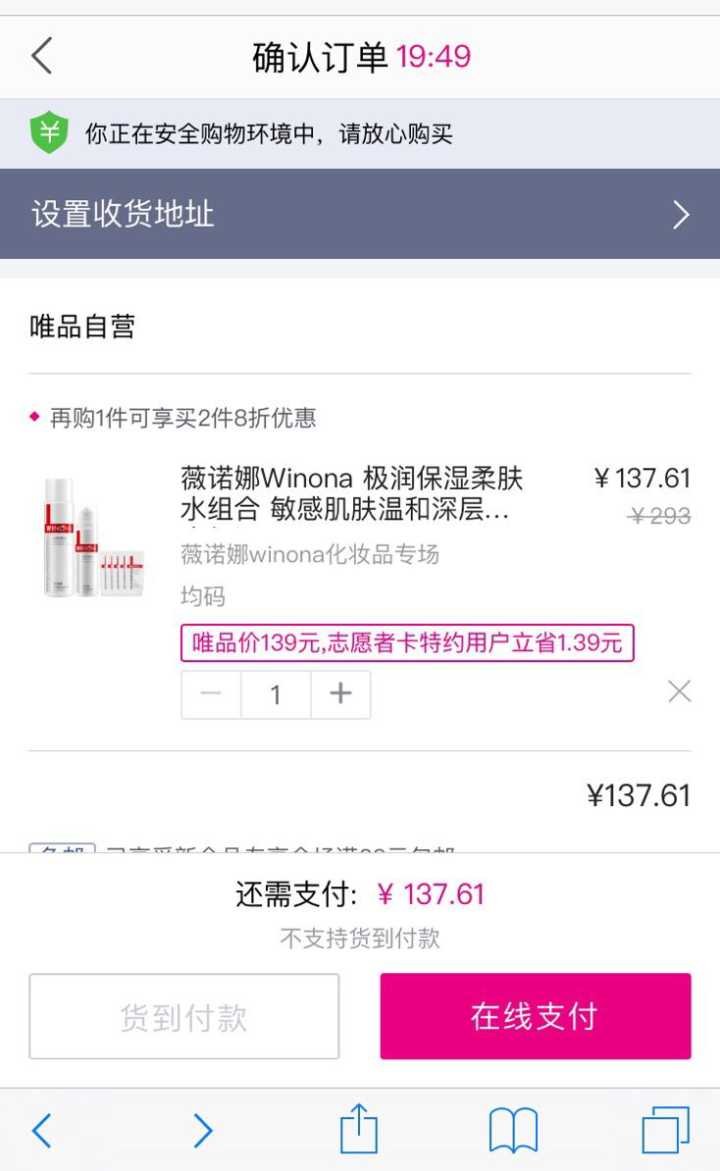不过说实话我已经不是第一次看到有人问唯品会是不是100%正品,也听到很多对于唯品会质疑的声音,可能是因为唯品会很便宜吧所以就很多人对其质量保持怀疑的态度。但是因为本身也是从事销售方面的工作,我反而非常相信唯品会里售卖产品的品质。