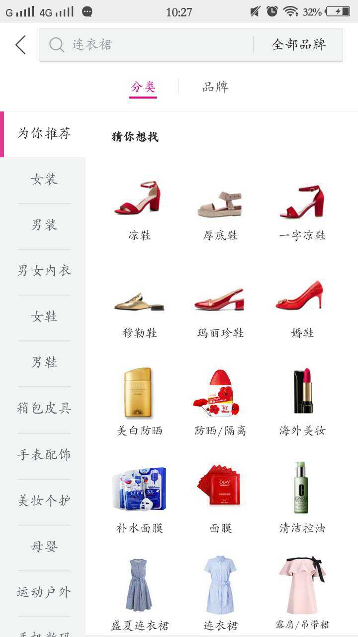 我觉得没什么女生能够拒绝这份诱惑,其他的品类也是如此。我认为搜索栏加上细致的分类能够满足各种需求类型的消费者,唯品会的高复购率也不是没有道理的。