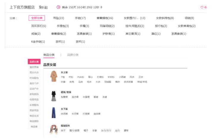 像上边的这张图我们就看到唯品会是按照商品还有品牌分类的,从这我们就可以知道唯品会现在卖的东西种类丰富了很多,而且合作的品牌也多了。