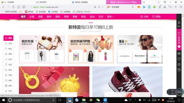 听说还有一个原因是,唯品会的建立是由传统商人建立的,不像天猫京东那些电商平台,起步时没有太多的计算机人才,也没有什么技术支持,所以唯品会官网一开始的设置相对来说会比较简单。