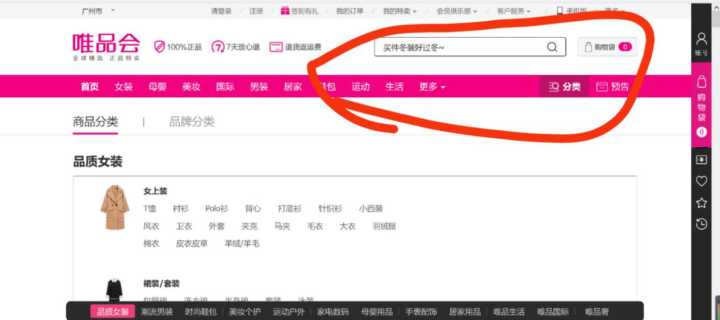 4. 唯品会早些时候是没有搜索栏,不过现在已经有了,而且唯品会的官网改进过好几次,可以说唯品会的官网建设是越来越好了。