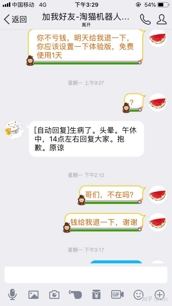 不要用猫淘的就好了,我给大家看看我跟他的聊天记录,我还多付了2元给他,也没给我退,一个礼拜不回我消息,我就呵呵了,为了300元,以为钱少大家就管了?