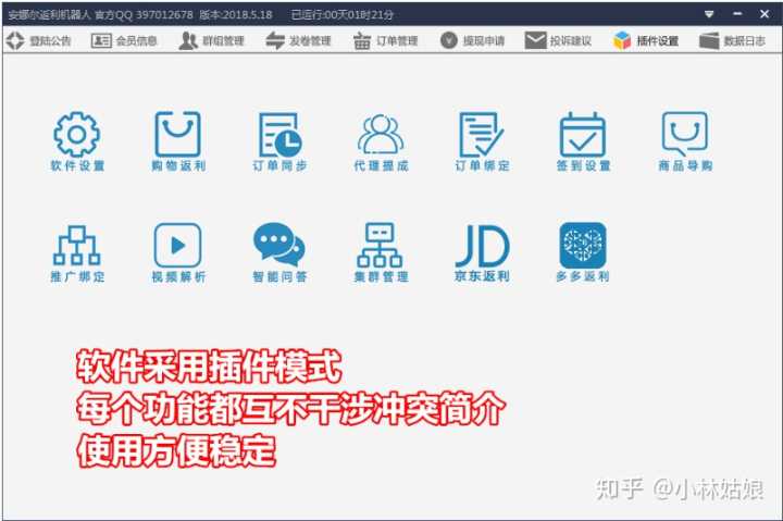软件的作用是实现用户自动查找优惠券,自动返利,自动提现等功能,还能设置超级问答,导购页面等功能。