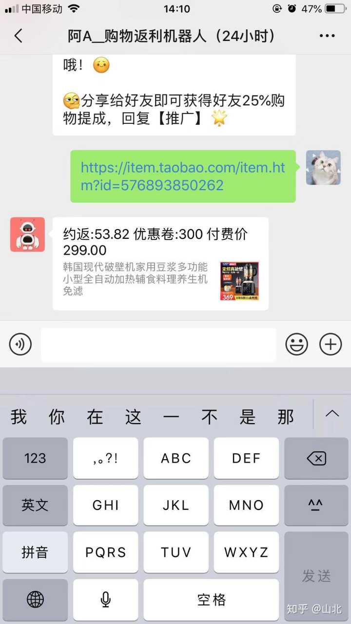 做返利机器人挺简单的。我去年10月份开始做的,自己有两个微信号。然后
