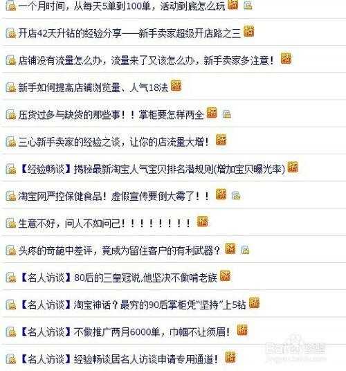 可以利用好淘宝的推销工具,比如直通车、天天特价等等工具,初期可以利用QQ、微博等等工具来推广。新手因为经验不多,所以很难推广好宝贝,可以去淘宝论坛,去看一些精华帖,有很多开店比较成功的会分享自己的成功经验,对于新手来说无非是一个救星降临。下图为‘’淘宝论坛‘’,里的精华帖