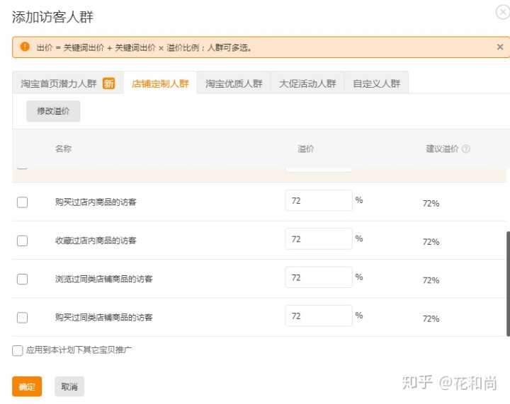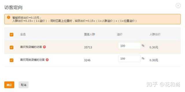 其中访客定向是固定的只有两个标签可用:喜欢我店铺的访客和喜欢同类型店铺的访客;