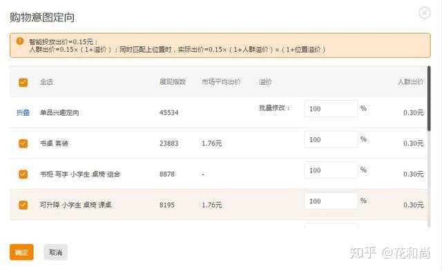 投放人群中的定向标签开启的前提必须开启智能投放,只有开启智能投放标签才会生效,才会扣费。标签扣费方式和只能投放的出价有关系,如只能投放出价是0.15元,标签人群溢价为100%,人群出价=0.15*(1+人群溢价)