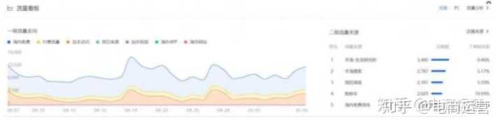 整个店铺的流量结构是主要是以免费流量为主,其中生活研究所的流量是占比比较大的,直通车日花费平均是在700的样子,可以看下这个流量结构图: