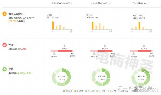 那么我们就可以清楚的分析到进店人群的营销偏好,我们可以着重的去报名或去做我们店铺对应人群转化率所喜欢的偏好。