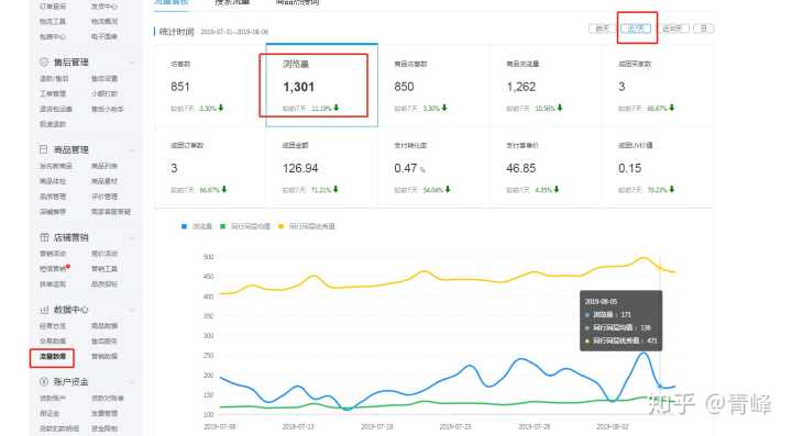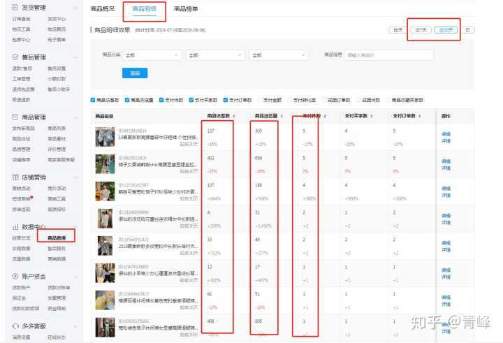 第二步、7天流量没有低于同行平均值的情况下,再去分析商品数据