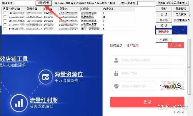 具体操作是在授权管理模块,点击添加授权,在软件下方的页面中按照要求输入店铺名称和密码即可。