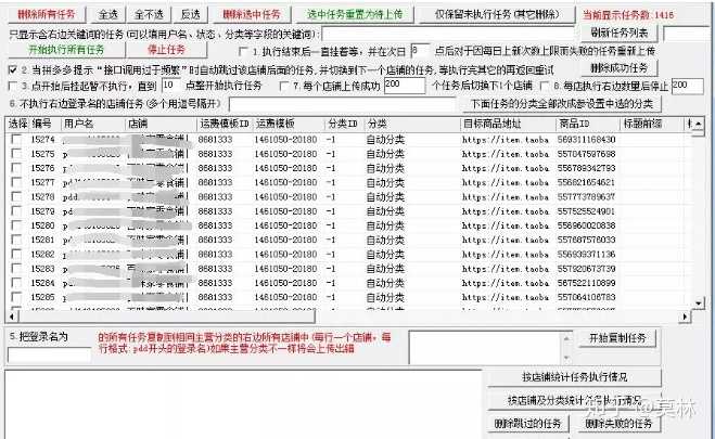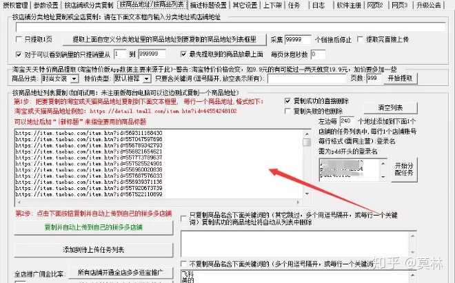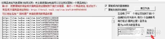 除此以外,目前新版的软件还提供了自动分配任务的功能,举例来说,我有1000个商品,10家店铺,希望每家上传100个商品且不重复,那么我们可以在软件中把需要上传的1000个商品地址全部粘贴过来,然后把需要上传商品的店铺的账号输入,填写每个店铺需要复制的数量,接着点击“开始分配任务”按钮,那么这1000个商品就会按照顺序分配给10个店铺,每个店铺100个商品。