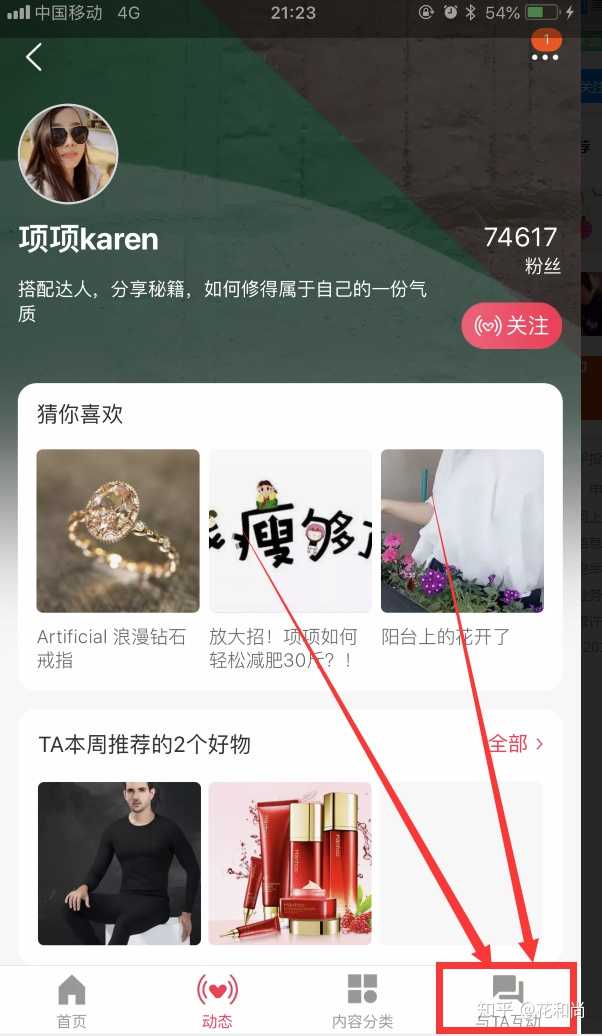 进入主页之后,大家就能看到这个达人主要分享的类目是什么,同时也可以看到他有多少粉丝 ,对于商家而言,我们肯定是选择粉丝数量多的达人,因为有可能会产生更好的转化!如果我们想和达人进行进一步的合作的话,我们可以给他私聊!(右下角)