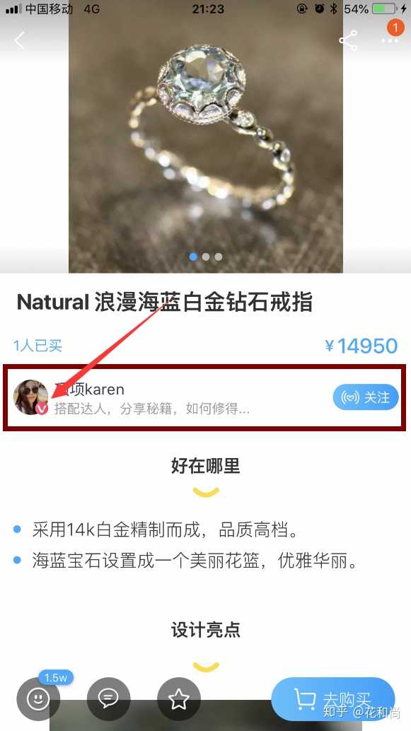 那么,进到有好货后,我们可以任意点击一款商品,进入之后看下图框选区域,这个就是就是达人的账号,当然也要注意一下,