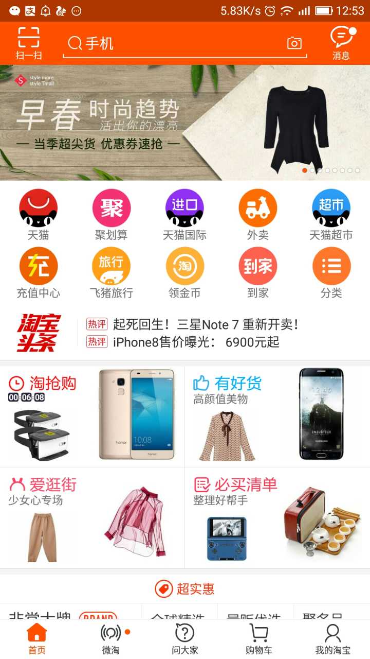 第一步 打开手机淘宝首页,必须用手机淘宝
