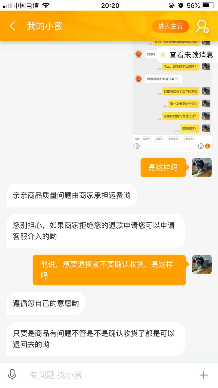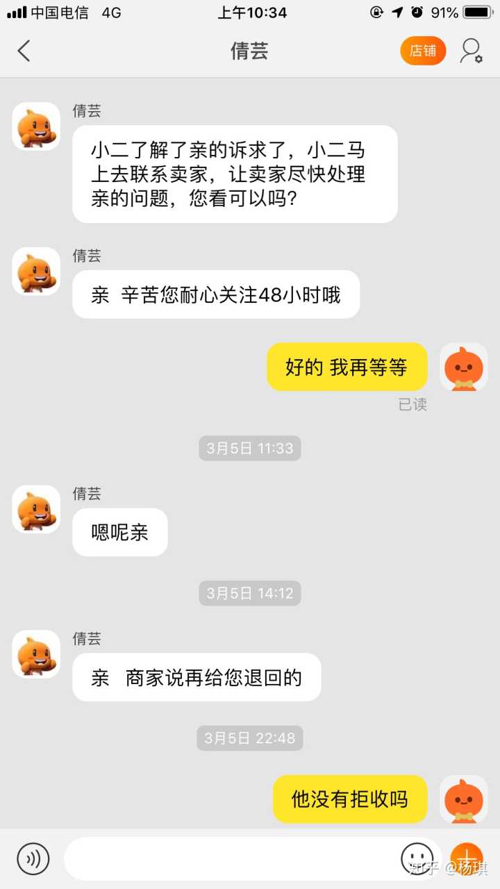 最后总结就是,如果你有理,那就不需要和卖家多逼逼,直接走淘宝小二或者阿里小蜜。处理速度很快,表扬一下。