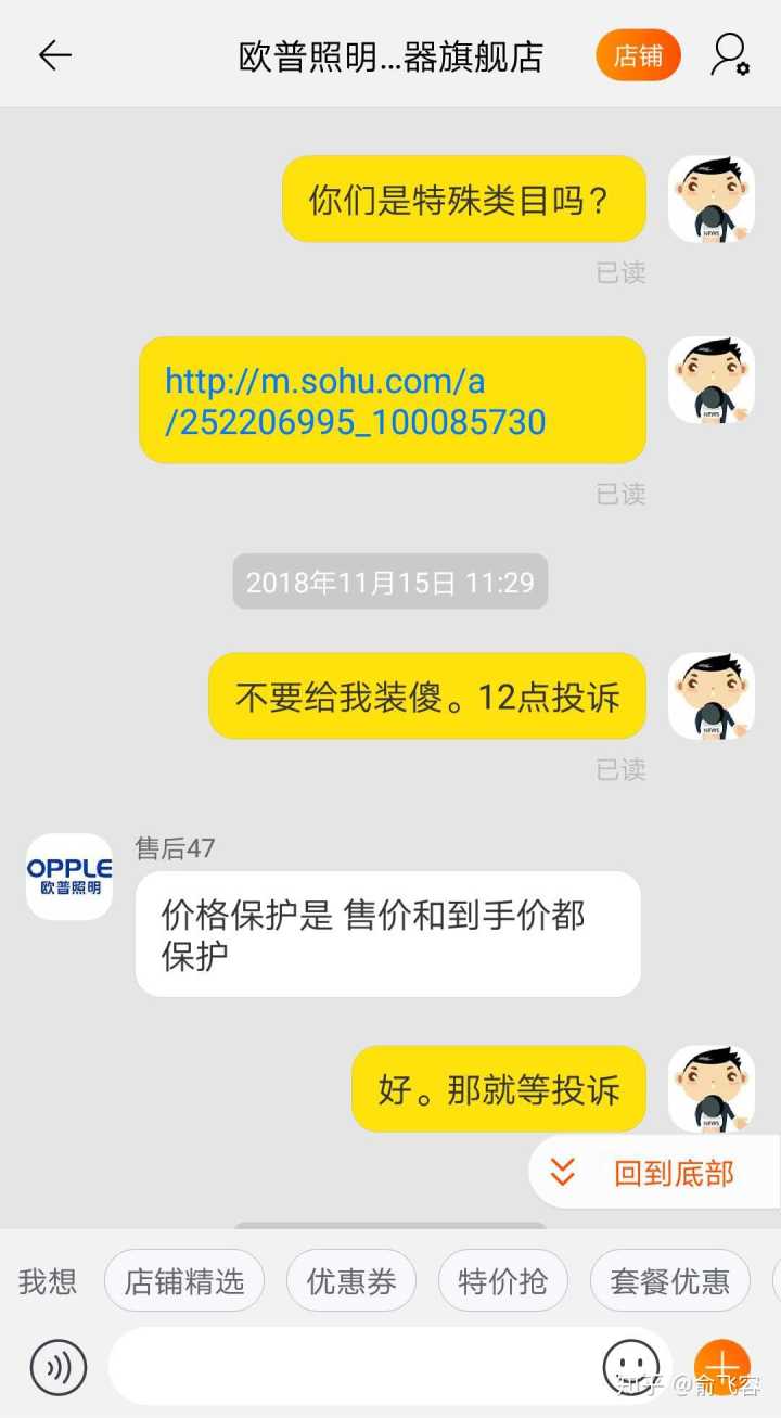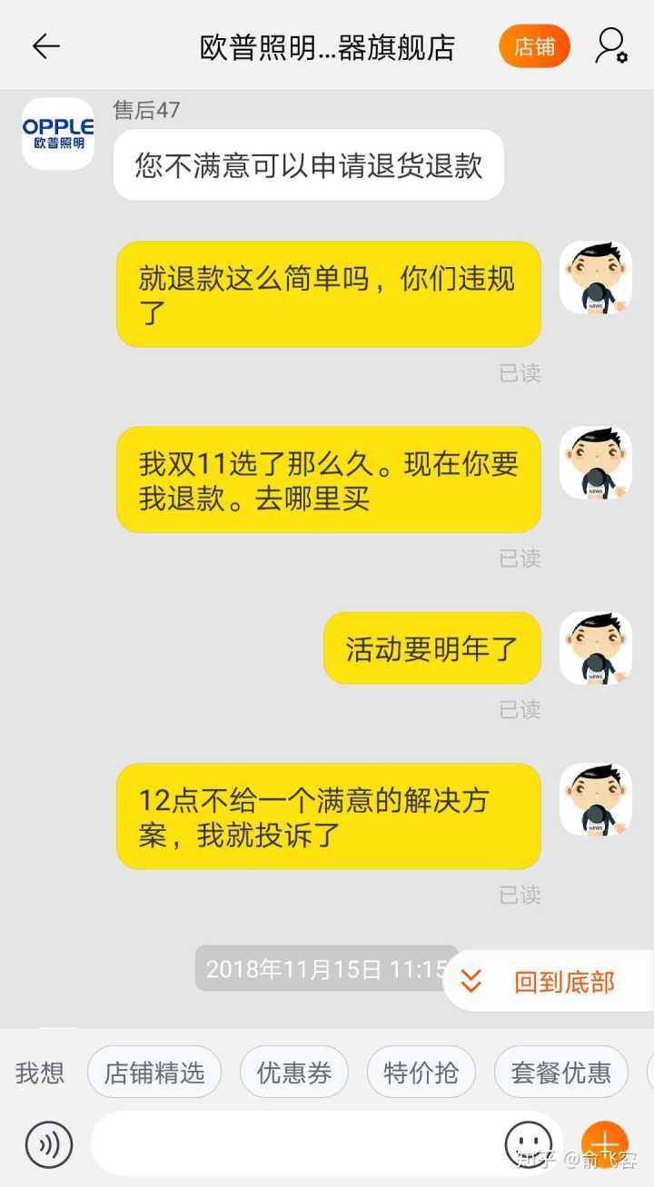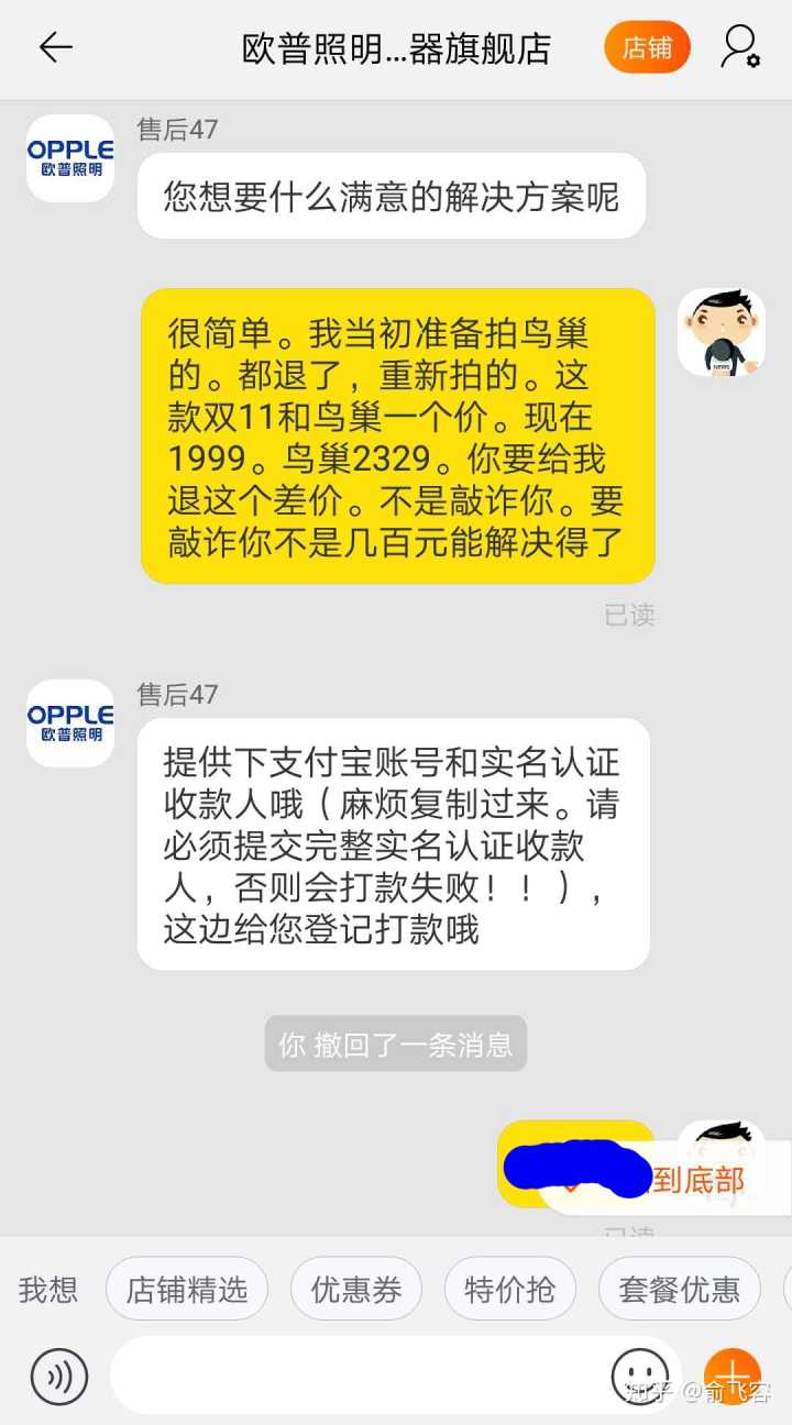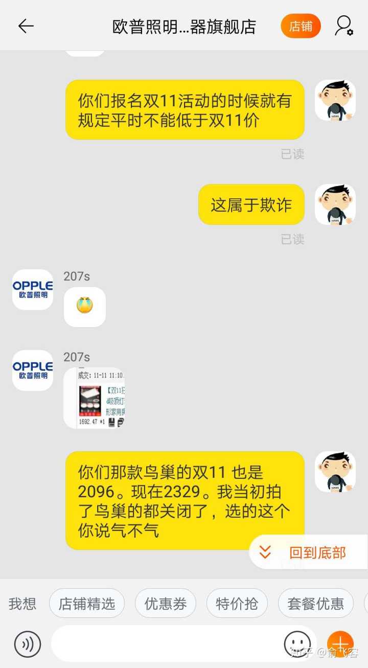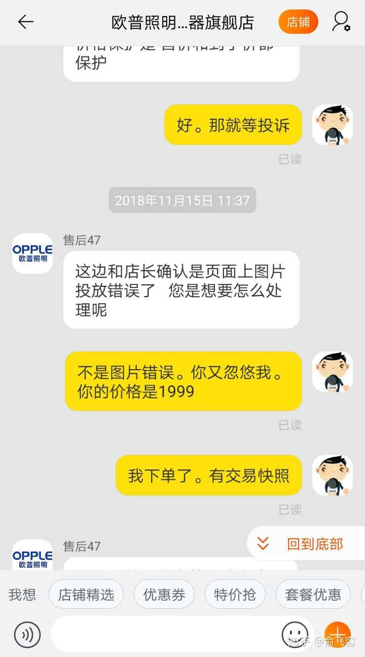 最后卖家没辙了,铁证如山。然后问我有什么条件。我的条件就是:退差价。而且是退两款灯具双十一后标价的差价2329-1999=330元