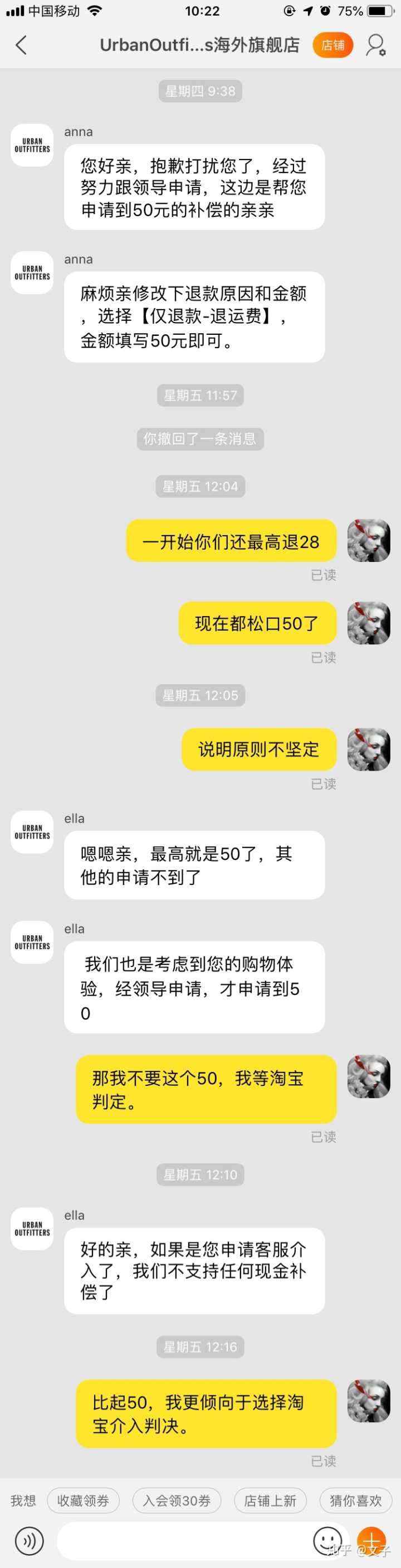 7月31日 周四 晨早上卖家又联系我了,说和领导申请了可以给我补偿50元。昨天还信誓旦旦说最高补偿28元,今天就变成最高补偿50元。我说要补偿50%,你只给我补偿50元?我可是有个原则的人呀,宁愿不要50元,也要让淘宝来仲裁。