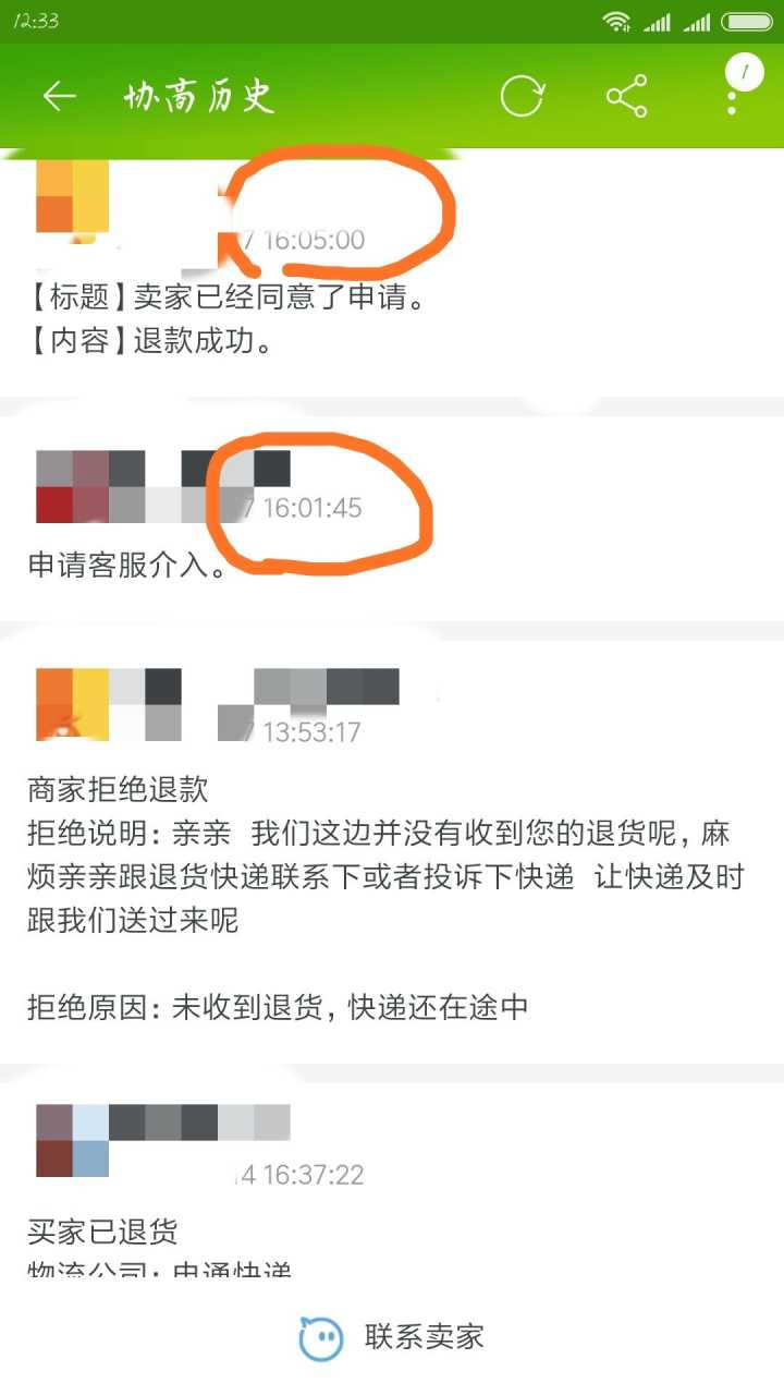 你们看一下,我申请客服介入后不到5分钟,退款了。