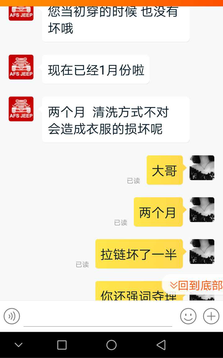 刚买到假货,想了想退货算了,因为之前的维权也是很耗费精力。去年冬天,给我对象买了一个冲锋衣,没多长时间,拉链坏了。我去找客服,客服说,去找个店修修。我本来是想要个说法,但是他没说赔偿,我就想着算了吧,拿去修修。后来没过几天,口袋拉链又坏了。我很气,就很重视的去找客服,这时候人家说这个订单超过时间了。