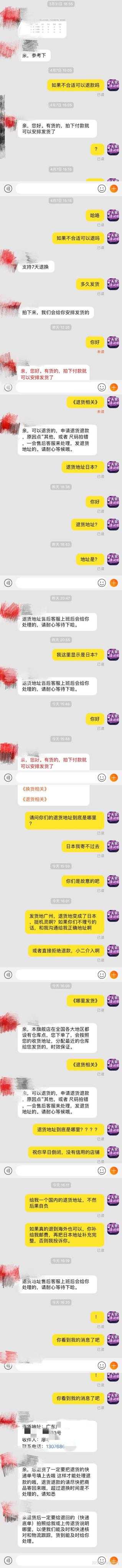 我还在想呢,发货地明明是广州,卖家这么辛苦跑去日本收货???马上就点击客服介入,但是由于卖家同意了我的退款申请,所以没办法介入。我想,这不行呀,我这么可爱的仙女怎么能被坑呢?就对卖家进行了言语攻击,没想到……他屈服在我的唇枪舌战之下(下图太长,慎点,)………最终还是乖乖给我国内的地址了。