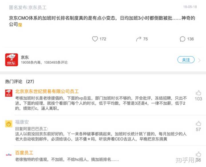 说句实话,我也在一些大公司待过,互联网公司的朋友也不少。对于加班,很多人都是可以理解的,活没干完,加个班也是理所应当,但是将加班作为一种KPI来进行考核,也就京东了。