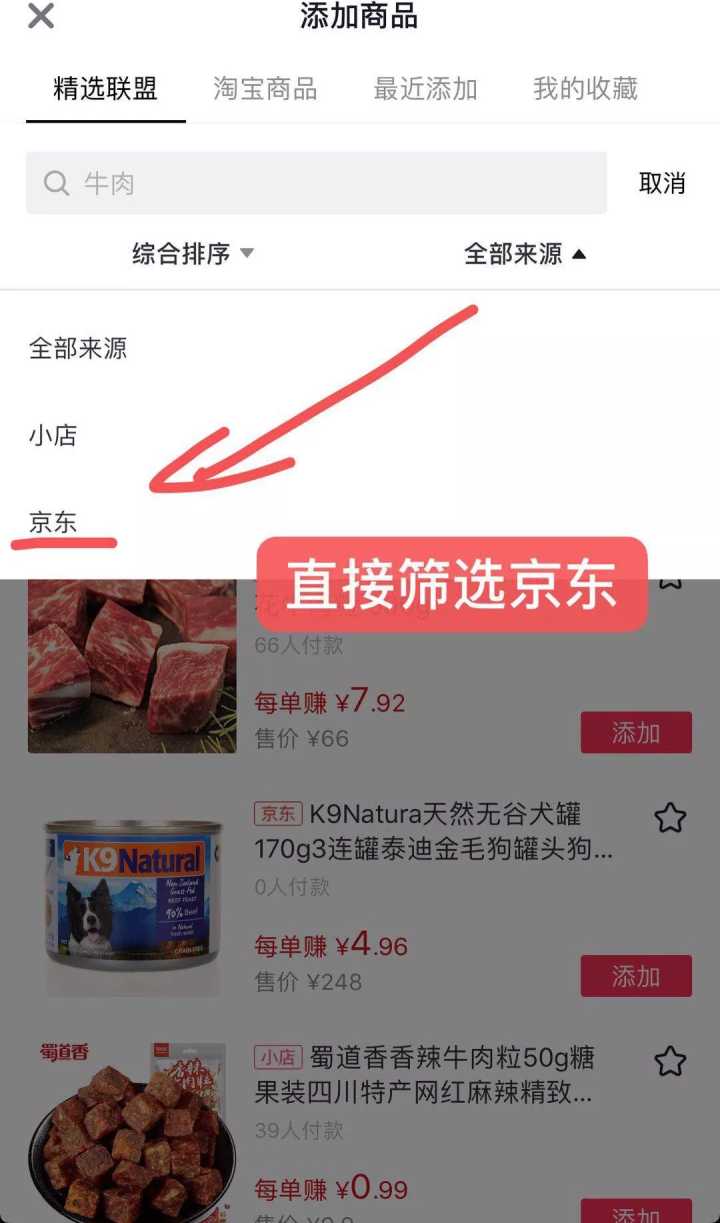 4、京东商品跟小店都放在精选联盟中,无疑是对精选联盟商品整体的提高。