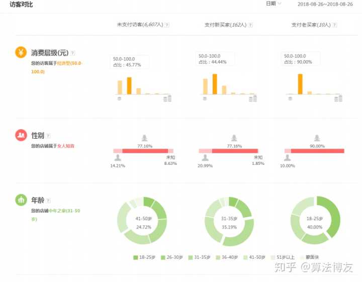 我们知道淘宝从2015年开始,引入了一个千人千面的概念,就是每个买家号依据自己的年龄性别购买习惯,打上了标签。如果你的产品符合这类人群,购买、收藏加购你产品的这类人群会给你的宝贝和店铺打上标签,以后系统就会分配越来越多的符合你标签的人群看到你的店铺。在生意参谋的访客对比中可以看到。