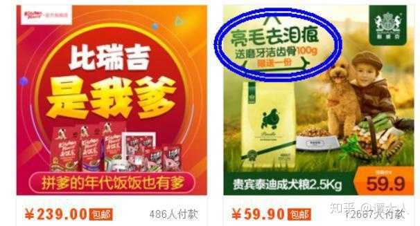 以上图为例,“亮毛 去泪痕”就是这款狗粮的核心卖点。