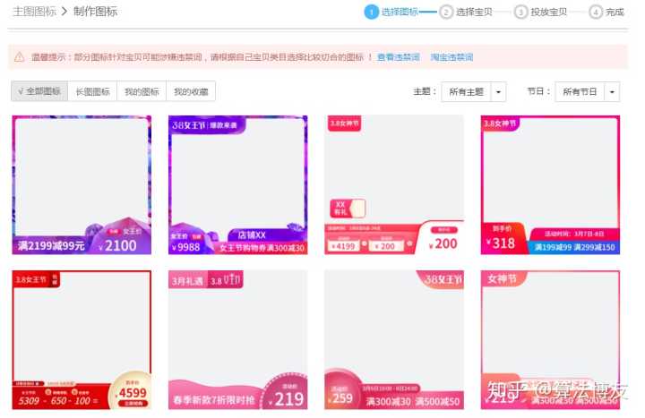 新手买家如果不清楚该如何在主图中添加图标,那么可以选择自己常用的工具来帮助自己制作主图图标。如图所示,在旺店宝中选择自己所需的图标和要投放的宝贝,一键投放即可。