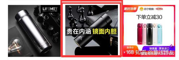 这个和卖家做主图一个原理,你的主图背景一定要用你的同行相反的颜色!那么你就能够醒目凸显出来!