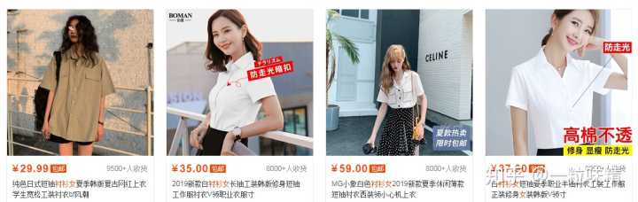 如果你的衬衫多设计一个暗扣,主图上划个箭头,跟着三个字:防走光,想一想就明白这样的主图会比平淡的主图多多少机会;