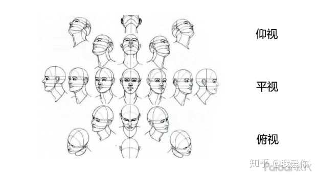 视平线以下的是俯视视角;视平线以上的是仰视视角;视评线上的是平视视角。