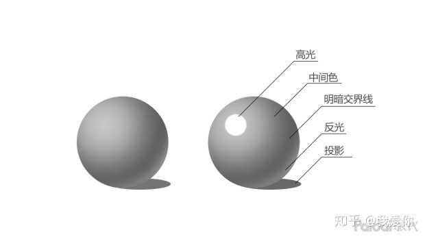 如下图中,右侧的球形只比左边多了一个高光,但看起来整体感觉就完全不一样了。