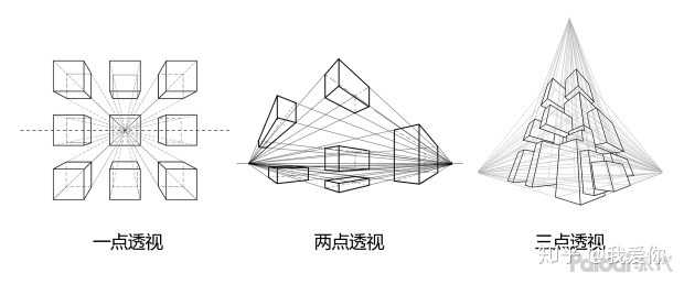 好的透视关系可以使图片具有更强的视觉冲击力,如下图列举了三种透视关系。